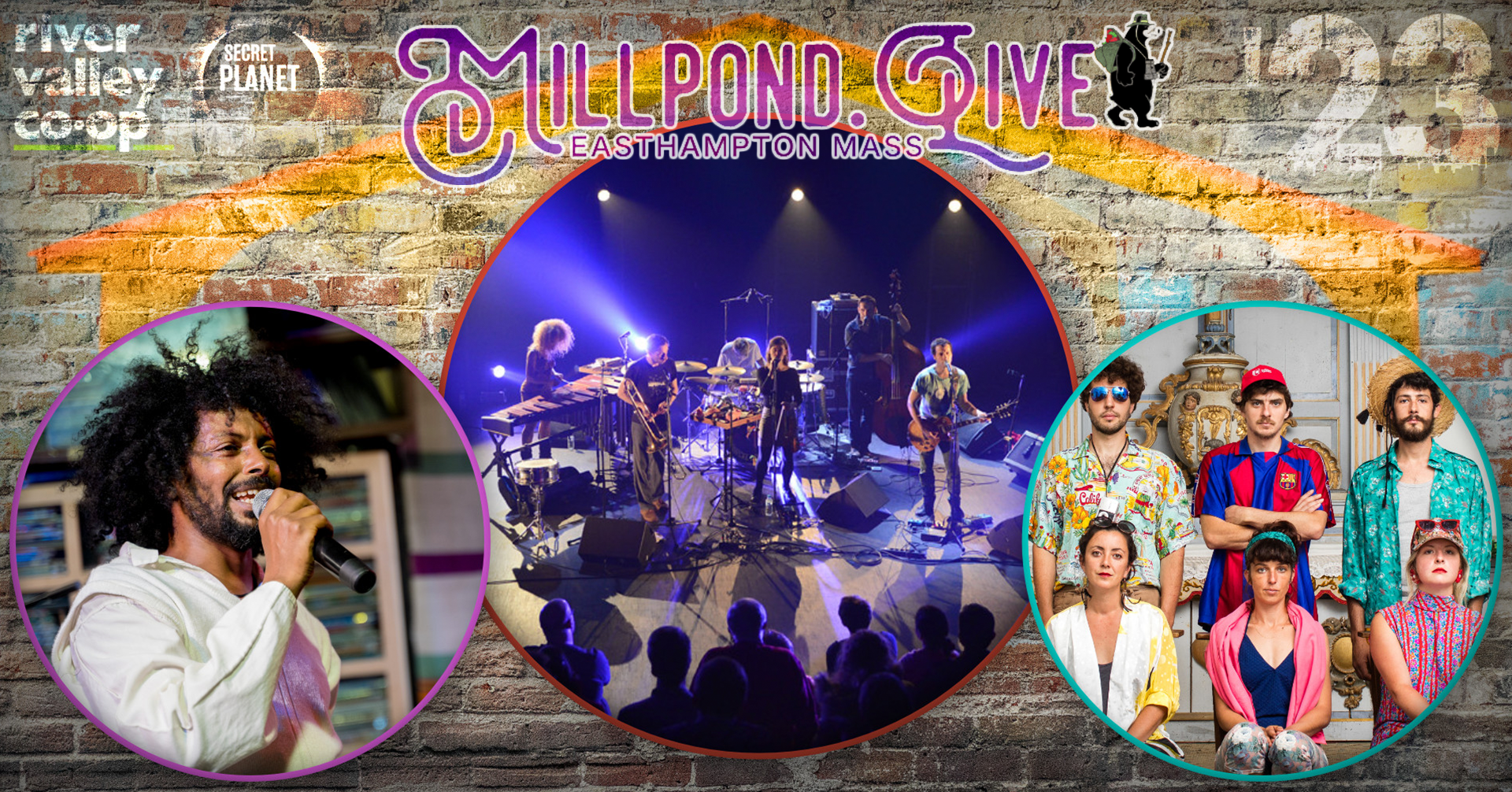 Millpond.Live Poster with photos of artists performing on day 1 in circles.