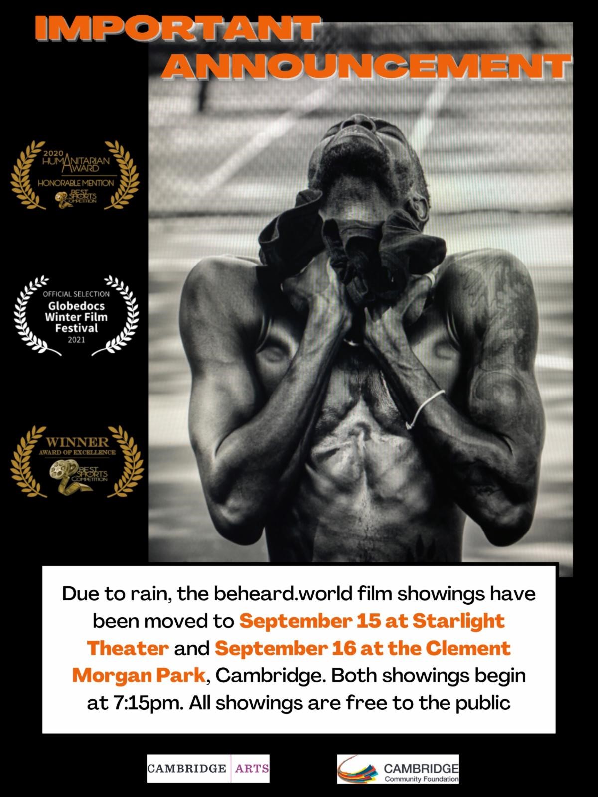 Delayed last week due to weather conditions, beheard.world filmsLenox Street and Together — 6 Feet Apart has been rescheduled to September 15 at Starlight Square and September 16 to the Clement Morgan Park. Both screenings start at 7:15 PM
