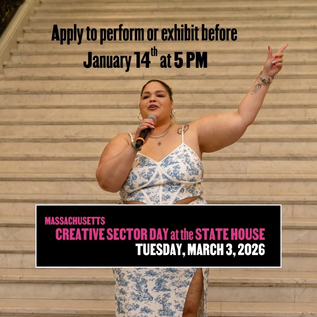 MASSCreative seeks artists, cultural organizations, and creative businesses across disciplines to join us as featured exhibitors and performers during the 2026 Creative Sector Day at the State House on Tuesday, March 3, 2026.