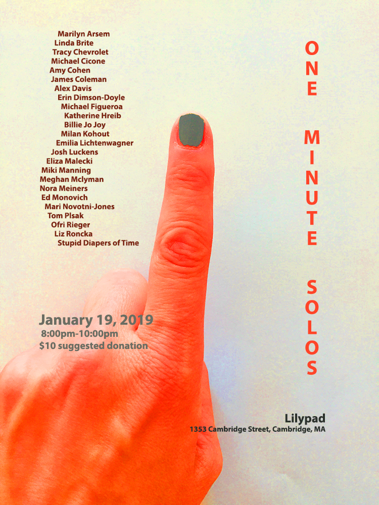 The third installment of 1 Minute Solos is coming up on January 19, 19. Starting at 8pm with multiple artists who will be sharing their interpretation of movement in the form of a solo performance piece. Curated by Jimena Bermejo, a performance artist who pushes the boundaries of intimacy between audience and artist, this event will create an environment where the definition of movement will be challenged.