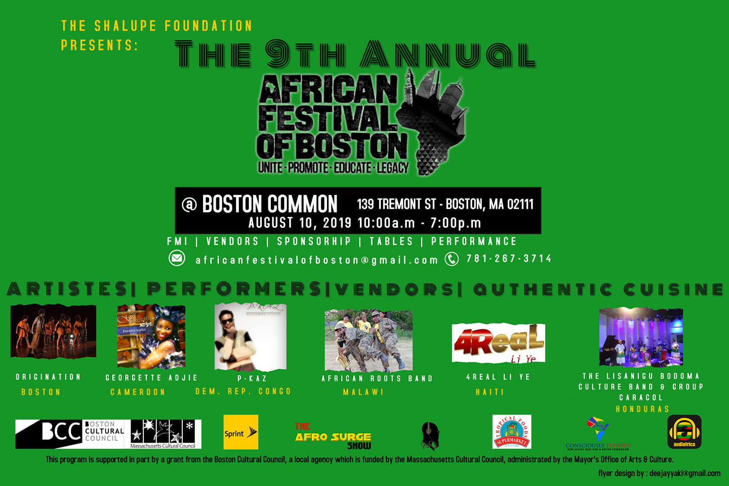 The 9th annual African Festival of Boston will be taking place on August 10th, 2019 at the “Boston Commons Park.” The African Festival of Boston remains the largest African gathering in the Boston area and a critical outreach outlet for community groups that wish to foster and maintain healthy relationships with African immigrants and other ethnic audiences.