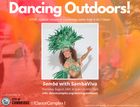 The Dance Complex and The City of Cambridge present Dancing Outdoors, a series of free outdoor dance classes occurring in Cambridge Parks on select Thursdays throughout July and August! All classes are designed for movers of all levels and are instructed by DC Teaching Artists.