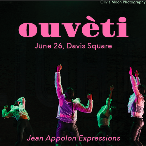 JAE is thrilled to be taking a site-specific production, Ouvèti, to the City of Somerville, in Seven Hills Park. Appolon’s latest work in development portrays feelings of isolation, fear, and ultimately hope and connection that people experiencing trauma might cycle through. Bringing together these emotions and experiences through dance, combined with the soundscape created by musician Val Jeanty. Thoughtful discussion and question time led by Appolon follows each performance.