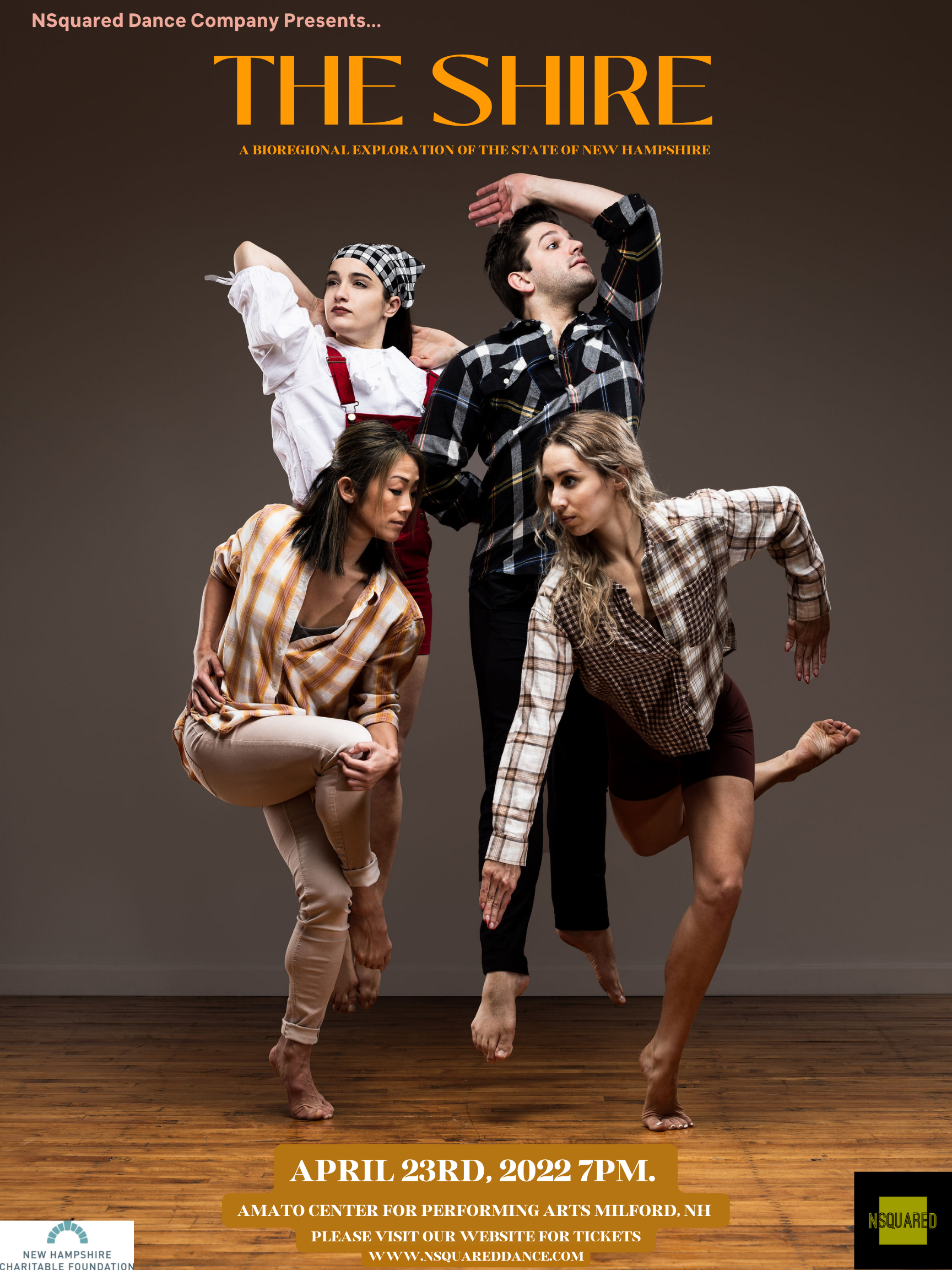 NSquared Dance is beyond excited to premiere an evening’s length work of, “The Shire” on April 23rd; 7pm at The Amato Center for Performing Arts in Milford, NH. A representation of the natural beauty, historical contexts, and culture of New Hampshire’s seven regions, “The Shire” reveals a movement analysis of The Granite State. Local New … Continued