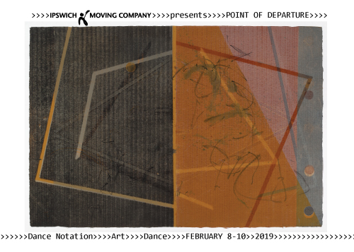 Ipswich Moving Company premiers Point of Departure February 8-10th at Ipswich Moving Company Studio. Noted visual artist, Peggy Badenhausen, created a series of Monotypes influenced by Dance Notation (Labanotation). These Monotypes became the inspiration for Ipswich Moving Company’s latest new dances entitled, Point of Departure. Artistic Director/Choreographer, Janet Taisey Craft and Badenhausen began their collaboration during the summer exploring the relationships between dance notation, Badenhausen’s Monotypes and the Company’s choreographic process.