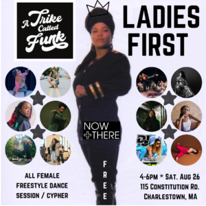 Ladies First poster with photos of women who will be performing.