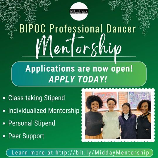 BIPOC Mentorship program poster with photo of previous mentees over a green background.