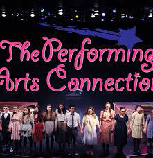 "The Performing Arts Connection" written in pink over a photo of a theater cast ready for their bows.