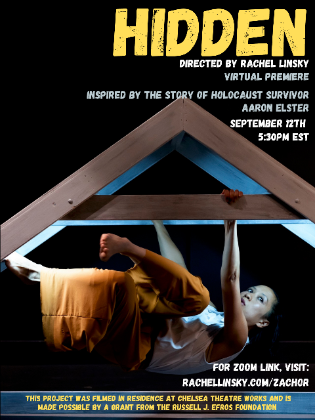 Experience the digital premier of Hidden by Rachel Linsky September 12th at 5:30 PM, a dance film inspired by the story of Holocaust Survivor Aaron Elster. The film, presented on Zoom, will be followed by a Q&A session between audience members, artists, and Aaron’s son Steven Elster.