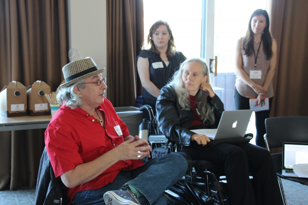 Charles Baldwin, Program Officer for the Massachusetts Cultural Council’s UP – Inclusive Design Initiative, makes a point with Aysha Upchurch, Associate Director of COOL Schools, VSA Massachusetts