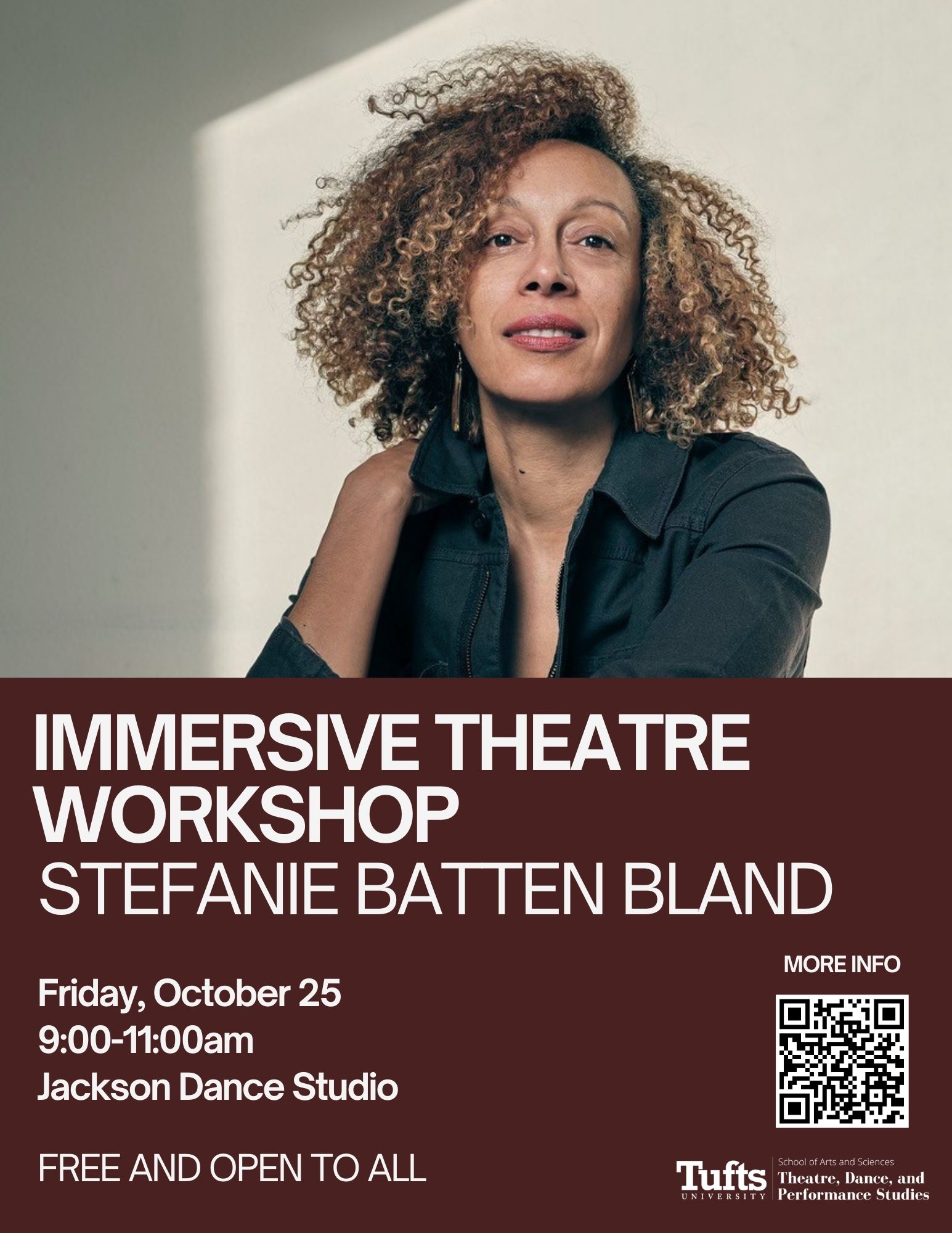 Join us for an immersive physical theatre workshop with Stefanie Batten Bland. Her work is at the intersection of dance-theatre, film, and immersive experience. Stefanie danced for Bill T. Jones/Arnie Zane Dance Company, Lar Lubovitch, Tanztheater Wüppertal Pina Bausch, PunchDrunk’s Sleep No More, Hungarian choreographer Pal Frenák, Jérome Savary at the Paris Opéra Comique and creator Georges Mombôye of the Côte d’Ivoire. She established Company SBB in France in 2008 and moved it to New York in 2012. Don’t miss your chance to move in the space with Stefanie! This workshop is free and open to the public.